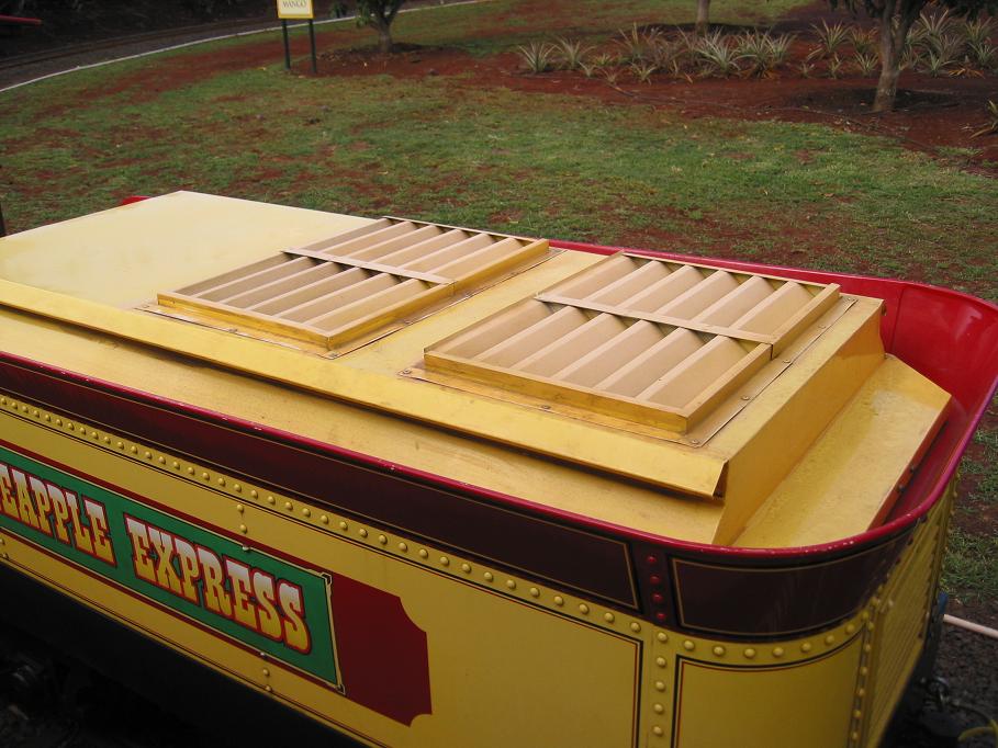 The Dole Plantation is an attraction on the island of Oahu, Hawaii. It includes a very large maze, the ever-present souvenir store and the Pineapple Express train ride. This train is a 2-foot gauge, operating railroad featuring diminutive (one could say minature) locomotives and passenger cars. The engines are steam-outline locomotives powered by diesel prime movers. The track is arranged n a loop-to-loop configuration with spring-switches at the loop conections.