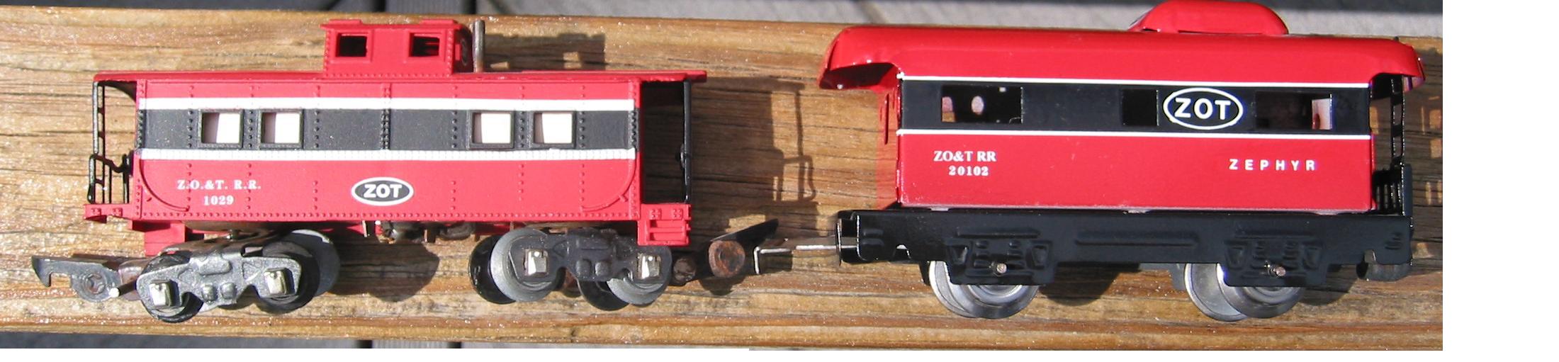 A few examples of tinplate trains modified with the ZOT paint scheme